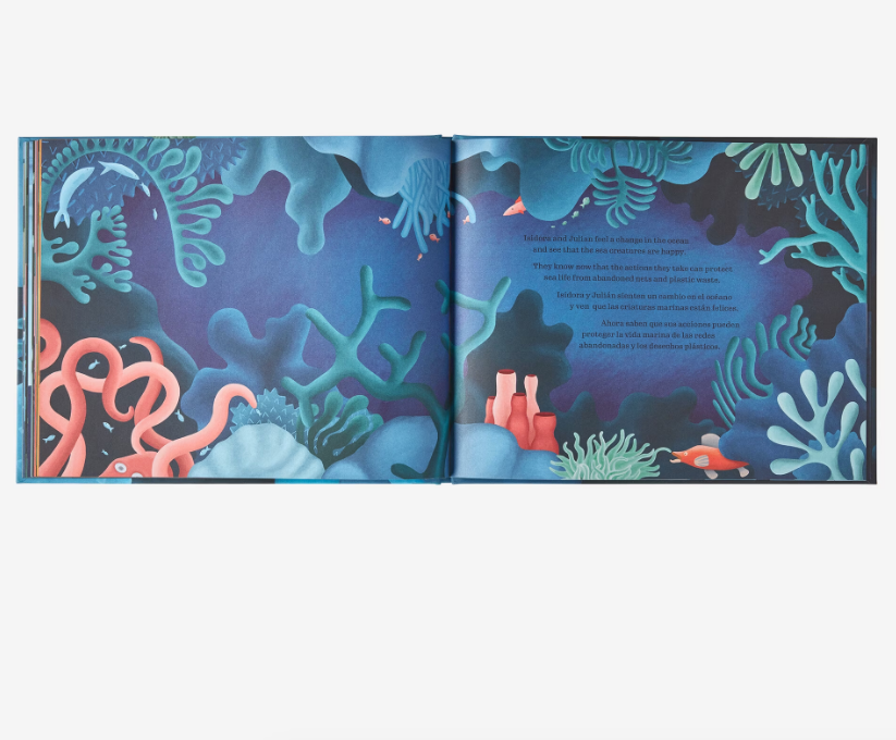 Isidora and Julian, playing in the Chilean ocean, hear a plaintive cry—a sea lion is tangled in an abandoned fishing net. They free their ocean friend then consider what to do with the net. With the help of a bird building its nest, they recycle it into something useful again, something better than new.