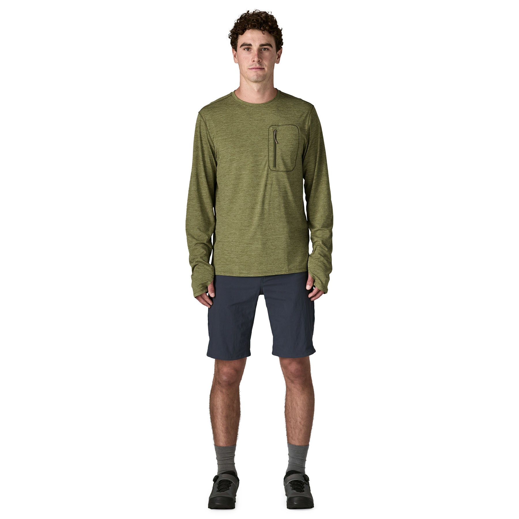 - Thumb holes at the cuffs provide added sun protection for the backs of the hands