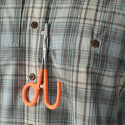 - Reach-through chest pockets with front-pocket flaps easily accommodate a passport or fly boxes; hemostat tab near right pocket
