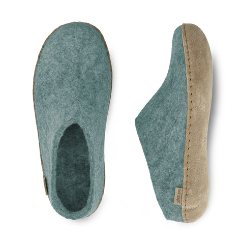 Cold floors warm instantly with your bare feet in glerups Slipper. The secret is the wonder of wool, the breathable fibre that retains the perfect body temperature while wicking away moisture. Felted from ethically sourced 100% natural no-itch wool, glerups Slipper is Danish comfort—without bending or reaching. Slippers nest neatly for zero-space packing. Fun colours borrowed from nature. Soft, yet strong, natural leather soles for around the house, balcony, and campsite. Our passion is felt!