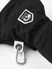 Hestra's Army Leather Heli Ski was originally created for ski guides in western Canada who needed a reliable and warm ski glove for long days of snow and cold. Made with durable goat leather that provides exceptional grip and feel, and with a waterproof three-layer polyamide fabric backhand. This model is for those looking for a warmer mitt, and just like a glove offers a range of smart functions that makes it easier when you can't go inside to warm up often. The liner, for example, is easy to take out and exchange if it gets moist or to adapt to varying activity levels and temperatures. And the long collar has a snowlock that, together with a Velcro strap on the wrist, ensures warmth stays inside the glove. A wrist strap reduces the chance of dropping the glove if you take it off to answer the phone or adjust your equipment. There is also an eyelet that lets you fasten the glove with a carabiner to your ski pants or climbing harness – practical when working with just a pair of thin liners on your hands. A durable, flexible companion for skiers that spend a lot of time outdoors and who often find themselves far from the ski resort and its comforts. Also available in 3- and 5-fingers models.